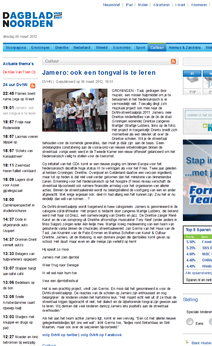 - Jamero - ook een tongval is te leren - DvhN - 6 mrt 2012