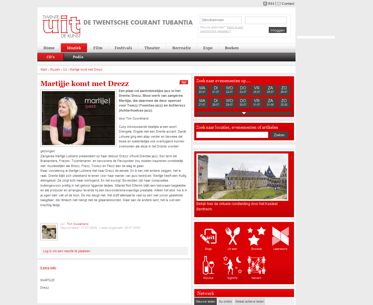 - Martijje komt met Drezz - Ton Ouwehand, De Twentsche Courant (Twenteuitdekunst.nl) - 17 jul 2009