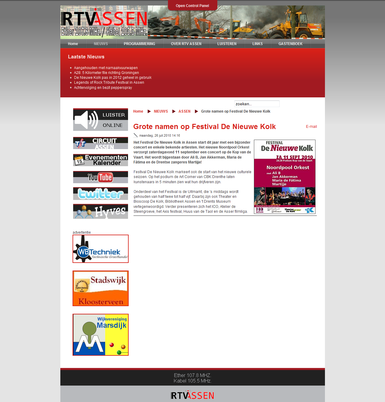 - Grote namen op festival De Nieuwe Kolk - RTV Assen - 26 jul 2010